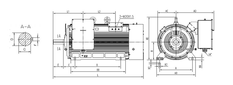 High voltage squirrel-cage induction motors are designed and produced according to IEC international standard. They are made of high quality cast iron or steel plate with good appearance and performance.